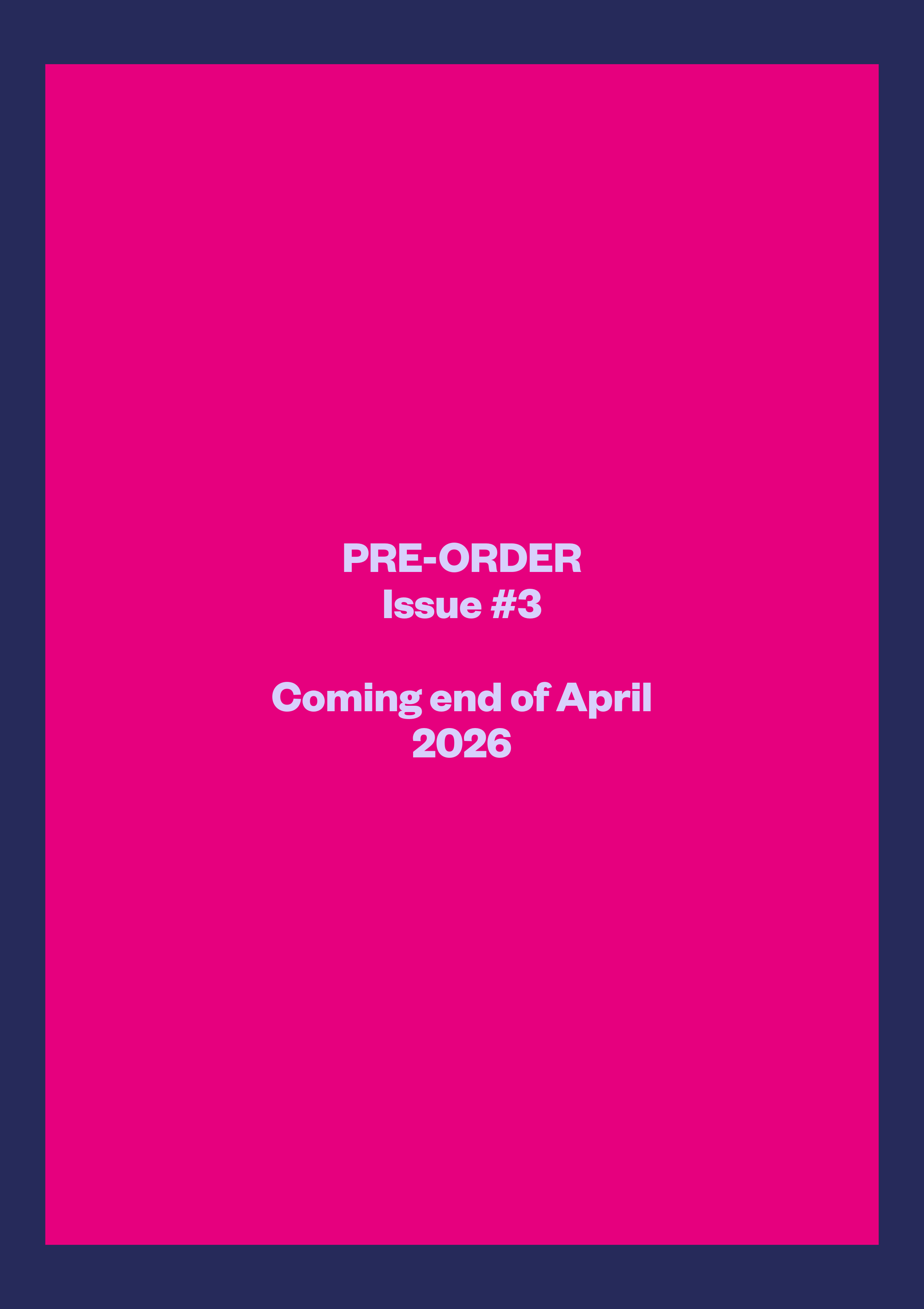 Issue #3 will be released at the end of April 2026. Orders will be shipped from the United Kingdom; postage and tax will be added at checkout where relevant.